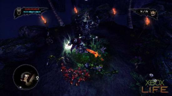 这场BOSS战,玩家可以只携带红鬼就行了。首先命令小鬼把花朵搬到排水口下方(即图片星形标示位置),放下花朵后它会自动爆发吸引蜘蛛走到排水口处,接下来只要踩下地图中央的机关,就可以把牠冲下来。只要红鬼位置配置得宜,他们可以连续造成蜘蛛极大的伤害。