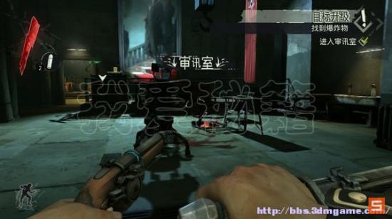 从钥匙孔观察门外的情形,看到天桥上站着背对的守卫,推门出去击倒,拿到庭院走廊钥匙。下楼梯进到审讯室,在桌上阅读值班官员报告,调查旁边的音频播放器。来到里间,从保险箱里拿到炸药,右侧的架子上有本关于天资试炼的书藉,类似的文件和书藉可以了解故事的背景,不是必须收集的。