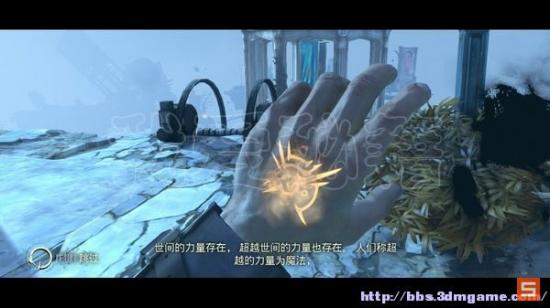 到亭里调查女皇的尸体,拾到纸条。往前看到一幅凝止的画面,被绑架的小公主在和仆人争执,阅读空中悬浮的信。继续往前冲刺,稍高的悬崖可以用闪现能力跳上去。沿着螺旋状楼梯下行,再次和界外魔交谈并得到机械心脏,此后在左手装备机械心脏,能看到场景中隐藏的符文和骸骨护符的位置。距离符文越近,心脏跳动得越剧烈。符文能够在日志菜单里换取新的魔法能力,而骸骨护符能提升主角的物理能力,比如挥剑速度、不引起鼠群注意等。这里须按提示进行冲刺跳跃,找到第一枚符文,建议换取黑暗视觉,等符文多起来再换取附身能力。黑暗视觉可以让视线穿透墙壁,观察守卫的动向,升到2级还能观察到可以互动的环境和道具;附身能力可以附身到老鼠身上,穿过窄小的洞穴,升到2级还可以附身人类,这两种魔法非常有用。
