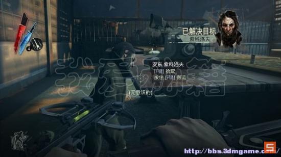 穿过二层的光之壁来到核心区域,解决走廊上的卫兵上楼梯,进到阁楼用催毁飞镖击倒索科洛夫,或绕到身后击倒,从桌上拾取符文(5/5)。为了背索科洛夫抵达码头,主角必须清理沿途所有的守卫。