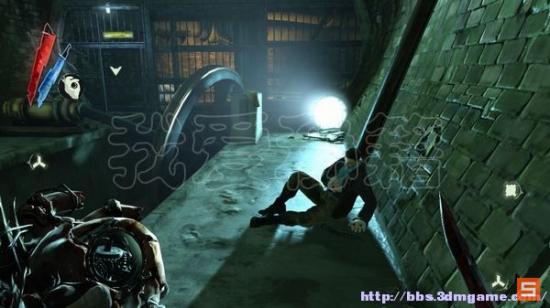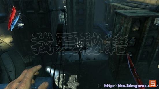 主角用砖块将头顶的木板破碎,跳出去拾取刺客的剑。现在要找回自己的装备,然后再去见托德。沿着楼梯上去有两名刺客,触发警报后刺客的手身相当敏捷,不但会隐身瞬移,攻击也相当的迅猛。因此能躲就躲,不能躲就暗杀,千万不要触发战斗。这里只须跟随一名刺客到阳台,纵身跳落水中。