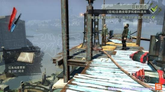 由酒吧顶层的窗户跳到对面的屋顶,沿着屋后的管道跳进车间的窗户,从桌上拾取符文(1/1)。来到下层,看到皮耶罗和索科洛夫在讨论发明制造,要主角前往哈夫洛克的卧室里取得电弧炮的蓝图。回到旅馆解决掉两名守卫,潜进202房间拿到蓝图,回去交给皮耶罗,他制造出新型的电弧炮,这里可选择击杀还是击昏敌人。