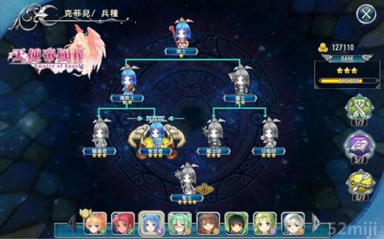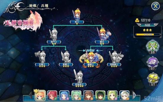 兵种的升阶转职强化。以主角妮雅为例,她初始兵种为战斗防御系的剑士,当通过升级功勋星数解锁了2阶兵种后,便可以从剑士进行横向的2阶转职。可选择转职为剑斗士或者是骑兵。