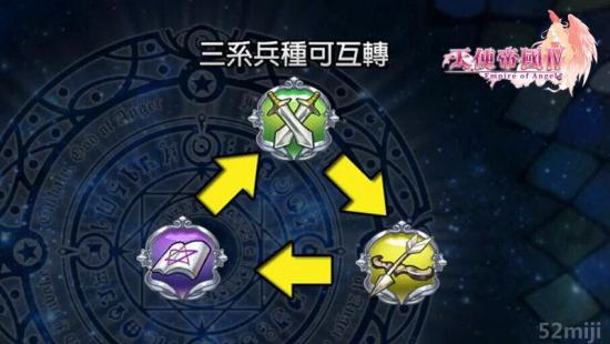 每个角色都可以通过使用金钱自由的在三系中切换兵系。但要注意,切换兵系是有前提条件的。只能在已经解锁的兵种间相互切换,比如现在将妮雅已经强化转职为3阶兵种圣战士的前提下,想要切换为魔法治疗系兵种的话,那麽只能切换为该系的初始兵种修士。