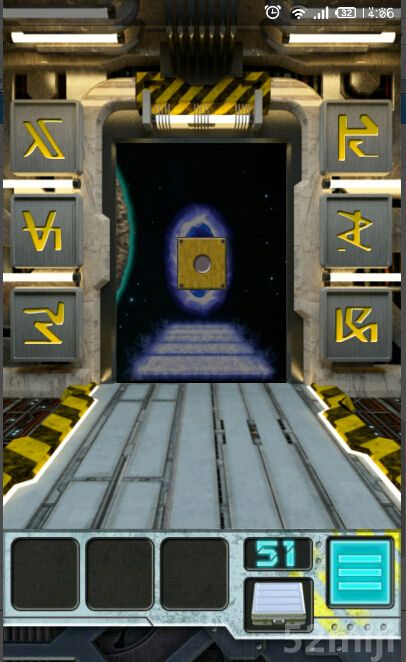 第51关。按照门内符号顺序,从左上边到右下边,在按钮上点击,没有出现在内的。