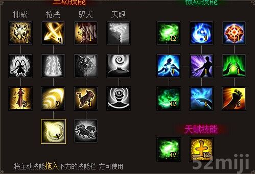 神将,刷图主要靠极影枪和破天枪俩个技能,打BOSS只要靠极影枪和普通攻击,一般是一次普通攻击然后一次极影枪,碰到高伤害技能,使用护主或者怒气技能躲避!由于第一次普通攻击的三连击,使神将拥有高击回与快速获得怒气的能力,被动技能选择击回强化,毫无疑问!