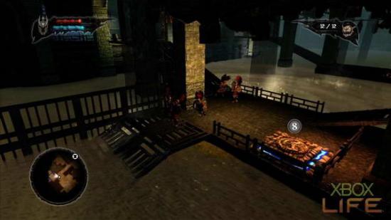 成功解救蓝色小鬼后,玩家会遇到几位帝国军出现守住魔王的去路。建议玩家控制蓝鬼游泳至军队后方,快速踩下开关让栅栏放下,接下来只要用「衝」的通过就好,尽量避免不必要的伤亡。