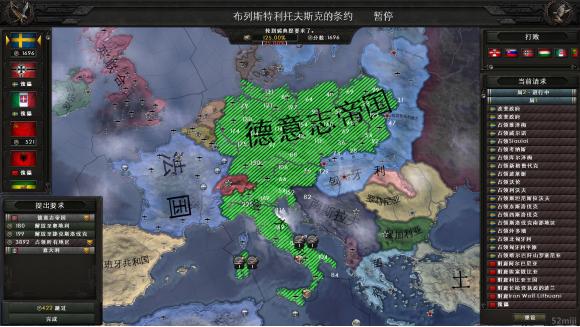 分赃结束后几乎完美吞并原轴心领土,包括毛子的核心。