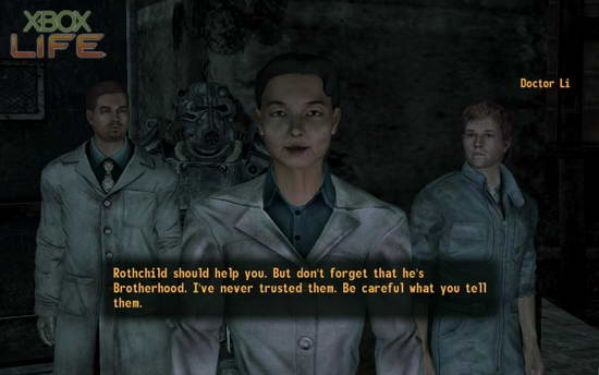 “没错,是她。她还知道我们欠缺的事物。那些Vault-Tec电脑,找出特定的装置…你一定要帮助她。”
