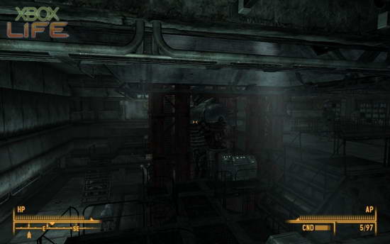实验室内部分为两层,四周的各式仪器和隔间,环绕著中央的巨型机器人。这只「人形兵器」该不会是兄弟会的秘密武器吧。