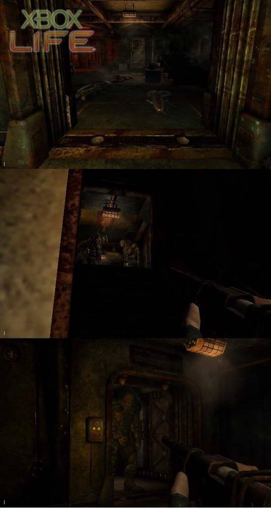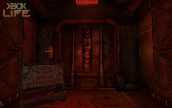 沿著阶梯往上,我察觉到在发电机旁还有一名变种人。我退后,待机并将他狙杀击毙。在其身后则是通往起居区的舱门。
