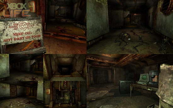 Vault 87的迴廊内满布尸骸,成群的蟑螂穿梭其中。这些尸骸恐怕都已经存在多年了。我怎么想都想不通,这里究竟发生了什么事情。