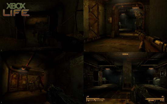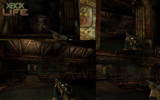 上楼回到刚来的入口,往北走,穿过满是大蟑螂的房间,前方一处转角有阶梯向上,我听见两名超级变种人在阶梯上方谈话。原来这里已经被变种人占领。我狙击掉其中一名,让另一名追了下来,然后跟Cross合力解决掉那超级变种人。我让Cross待在后面的房间等我。前方的路,我必须自己进行探索。