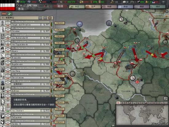 1939年9月11日,在ZORY、KONIN地区胜利,在KONIN地区遭受攻击。在DONAUESCHINGEN地区战败,DONAUESCHINGEN被法国占领。随后重新部署,如图: