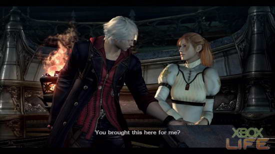 正当大伙儿在收拾大教堂里的混乱时,琪莉耶拖著一个很重的箱子,吃力的走了过来。当然,跟所有老梗的剧情一样,男主角怎么可能让女主角自己拖这么重的箱子呢?所以,尼禄就走上前去…唉…他没有帮忙,只是问琪莉耶: