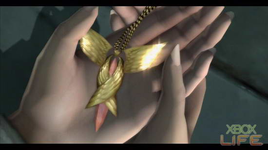 看著尼禄开心的打开了箱子检整装备,琪莉耶寻找著刚刚混战时掉落的礼物。在一个碎掉的椅子旁边,琪莉耶找到了尼禄送他的礼物,外面的包装已经破烂,里面的礼物也掉了出来,是一条项鍊,上面有一个有许多翅膀的坠子。开心的琪莉耶,顺手把项鍊戴上,转身回到哥哥和尼禄那边。