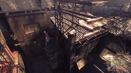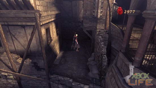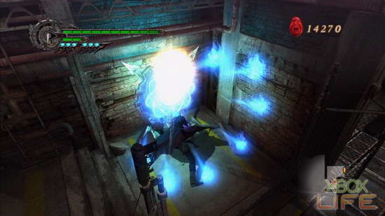 接下来是蓝港(Port Caerula),通往下一张地图的路是一座没放下的桥,玩家必须前往蓝港的仓库打开机关才行,进去之后清光小怪,会看到一个蓝色轮盘,不要怀疑,用力扁下去就对了,扁到轮盘上的火光炸开,被蓝色丝线缠住的封印就会解开,这时就可以去开机关。当然,依历代DMC的风格而言,这机关绝对是秀逗秀逗的,然后主角也一定会用暴力让他屈服…(汗)
