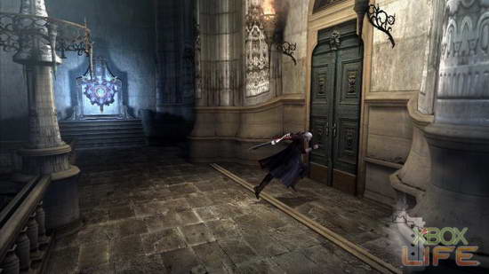 进入中庭,两隻冰爪狼人会在路上等你,赶快杀掉往佛理斯瀑布前进吧。佛理斯瀑布目前不是玩家需要注意的地方,只是过路而已,绕到另一边的台阶,有一尊红色的武斗神像,那是给但丁打的,不需要理会,直接往上面的门前进,回到中庭。一回到中庭,依然有两隻冰爪狼人等著你,快快杀掉,回到巨厅。
