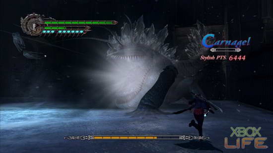 嘴抱版的冰锥攻击跟前扑咬,只要不要在正前方就好,跑来跑去就闪的掉。假如前扑咬没有闪过,被咬到怎么办?第二轮以后可以启动魔人化,就可以从蟾蜍的嘴巴里逃掉。