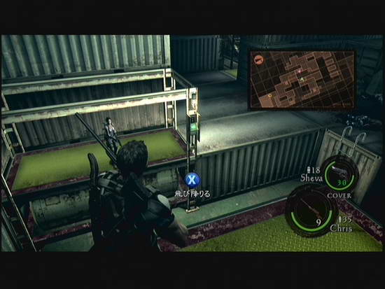 7-与黑妹会合后跟着她走,一路来到存档点,这里先站上升降机上,站上去黑妹就会开枪送你上去,然后你在开枪送她上来即可(图3)