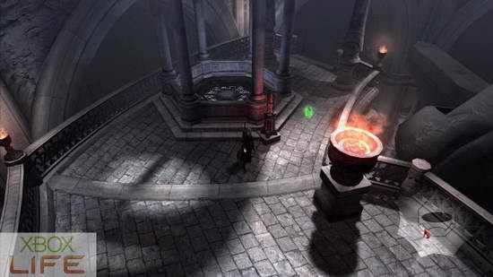 继续前进,来到有纪录点的升降盘前,这个升降盘的启动杆比较远,要往前走,启动轮盘,拉魔法挂勾后上四楼启动。