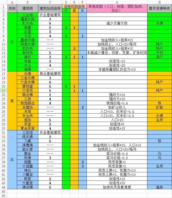 下面对PK版本有变化的内政设施简单做个分析。