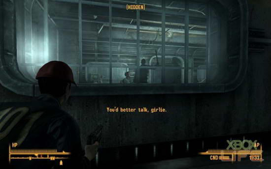 穿过了闸门,我来到前廊,我听见有两个人在厅内谈话。他们似乎正谈论著Vault的混乱,正想要离开。其中一个叫Tom的,往外面的门廊跑去。突然间,我听见了枪声!是警卫射杀了Tom!另一个女人跑了过去,同样也被射杀了。我躲了起来,准备面对接下来可能发生的战斗。已经全面失控了,为什么会这样?难道是Overseer下了什么命令吗?还有满地的大蟑螂,老奶奶死在酒吧内,这一切会是谁造成的?