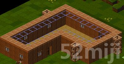 6、发展到中期,要做到每个人一间屋子很占地,所以要考虑建楼房。楼房可以往下挖,也可以往上建,往上建的话要先建好一层(可以占用多个层)的墙体,在楼板处一圈一圈往里建墙体,为何成一整片石块墙后,+1层后就可以布置区域了,以此类推,脚手架在开门处做楼梯,比建台阶还方便。