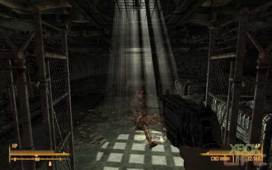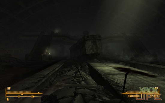 层层烟雾瀰漫在这地底下的通道空气中。过份的宁静、任何细微的声音都能听得更清楚,但前方等著我的是未知的恐惧!我启动了Bip-Boy的照明功能,它总是我最好的朋友!虽然照明范围并不太大,但有助于敌人找到我…唉,是在幽暗的地底通道中,看清楚有没有可以搜刮的物品…