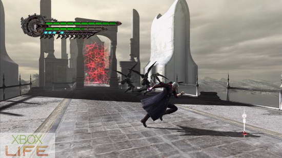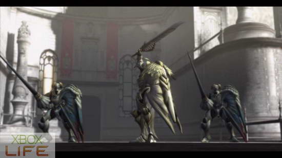 从打完单翼天使的平台下来后,就是总部的大门。在这里会碰到新的怪物:骑士队长。骑士队长的机动力比白骑士高上很多,而且会指挥白骑士作战,相当不好应付。
