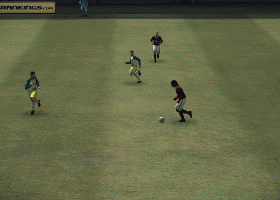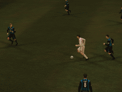 反击中,前锋拿球,直线向前加速,如果运气够好,你的正前方就是这个空挡。(第三球第二次过人)直线向前加速,这时候对方的中后卫可能会从侧面跑来拦截,那么到距离后卫两米左右的时候直接来个假射,骗后卫停顿一下,赢得一点时间,前锋直接向前加速,就从空挡过去了。(第五球过门将和此方法同理)