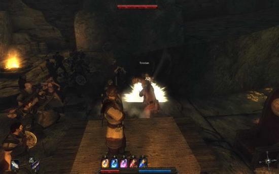 ,而且竟然无敌到无视旁边砍他的怪??所以我就把他们引到盗贼营地的洞穴里,让里面的人围攻他。。。。。