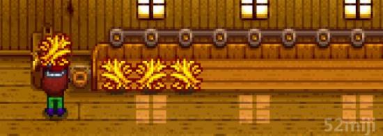 每一次拿的时候都会刚好拿出现在在这个小屋里拥有的动物数量,比如我在鸡窝养了12只鸡,那么我每次拿草料都会拿到12个。