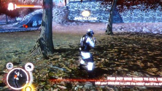 2、出房间到蓝色目标点 变身成西装男 走到蓝色标记点 杀死目标后 逃离现场