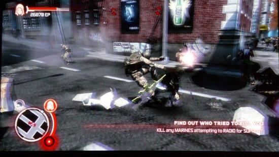 4、追上头上有蓝色标记的人按B抓住 按Y杀掉 按A可以跳过暴力情节 进入菜单后退出