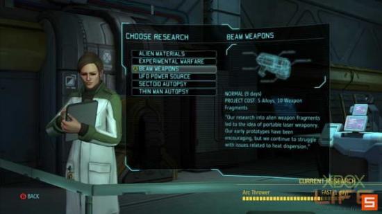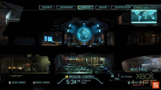 进入主要基地之后,这里分成战情室、研究室、工程室、营房、机库五大区域,而每个区域也各司其职相辅相成,战斗后所获得的战争资源,能提供给研究室研发新的护甲、武器等装备,当研发成功后再转交给工程室生产,最后生产完成的装备就会自动分配在战斗单位底下的装备栏里。虽然这样看起来似乎不怎么难,但仍然需要把资金与时间列入计算。如果将大部份的资源都花在研究上,那日后可能无法扩建基地设施,甚至会影响战斗装备的生产;太过保守扩建基地,就会发现战斗能力差敌人一大截,甚至在飞碟拦截战时战败,导致某个国家的恐惧值过高,退出X-COM的联合互助机制。
