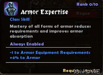 专精所有类型盔甲,减少需求等级,增加护甲吸收