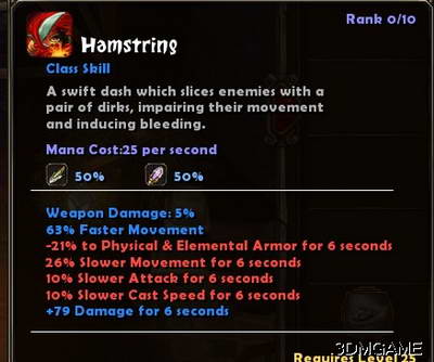 用一对匕首快速切向敌人,降低他们的移动速度,促使他们流血