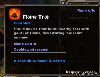 投掷一个燃烧的陷阱到敌人周围,杀死火抗低的敌人