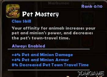 你对于动物的喜爱能增加你宠物和变身后的能力,减少pet回城时间