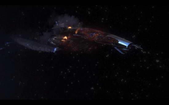 继续剧情,看到Normandy在搜寻Geth的途中遭到不明飞船的攻击,船上的大副Pressly在爆炸中身亡。Shepard决定弃船,但是驾驶员Joker不想走。Shepard决定先让Kaiden(选男性角色则是Ashely)先走,自己去找Joker。
