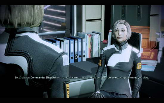 游戏刚开始,看到有两个人在讨论游戏主角Shepard。。。