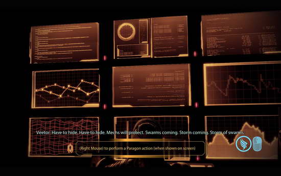 Shepard决定和Quarian合作,但在行进至中途的时候,Tali在通讯中说其他的Quarian想在Shepard之前解救Veetor,他们自己先走了。