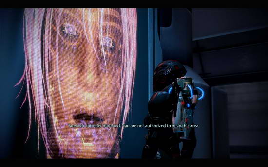 继续向前走,打开门后,VI在广播中警告入侵者(Shepard)。在另一个PDA上了解到,VI很有可能发生故障,认为空间站被病毒感染了。