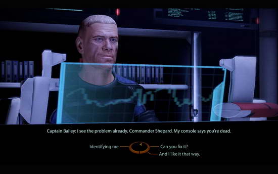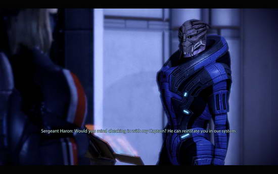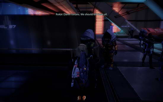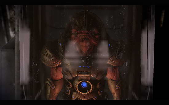 来到这里,经过扫描,那个看门的Turian似乎很吃惊,看来Shepard活着的消息很多人都不知道,守卫让Shepard和C-Sec队长说话。