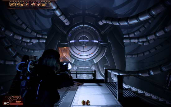 如果顺利的话会没有人伤亡。到达目的地后,EDI说Collector正在想方设法开门,此时选择一个2个队友进行最后的决战。