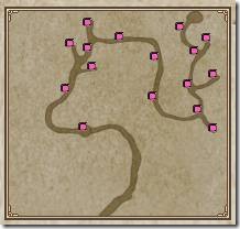 本场景主要是由狭小的河谷小径组成,岔路不少且有些隐密,若是想将宝物全收集完,要注意是否漏掉了岔路中的事件点。由于道路狭窄,遇到BOSS战时通常也无法避免一战。