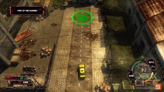 一样的,回到基地的路上除了右下角的地图外,萤幕也都会有方向指示,其实只要安全载到人后,回去就挺简单的,只是如果时间充裕的话也别忘了回基地的路上到处看看有没有武器以及现金可以吃,接著就把车停到绿色有房子的框框就完成任务啦!!