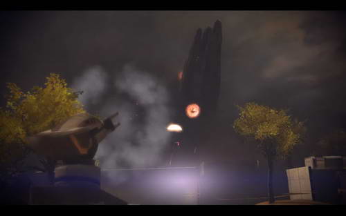 最终一番苦战之后,EDI修复了殖民地的炮台,愤怒的火炮像远处的Collector飞船喷射而去,挨了揍的飞船识趣地点火飞走,连带的掠走了他们抓住的人类,不过好在Ashely活了下来,她很欣喜地看到你还健在,激动无比,然而,在她看到你身后(悲剧....下次不带人了)Cerberus标志之后,和Tali反应一样,甚至更剧烈,直接质问你到底和这场侵略有什么关联,你费了很大口水才弄明白原来星盟认为这一系列的劫持事件都是Cerberus在背后搞的鬼,你有是一番口水解释清楚,她平静下来,开始重新关注你,你心情万分,想重燃旧情,骗她上船,哪知她态度强硬,坚决不予Cerberus为伍,弄得你好不尴尬,道不同不相为谋的你只好悻悻于她道别。继续回到飞船四处寻找新的下手对象。