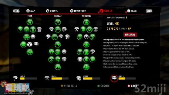 LV9:每使用枪械射击僵尸可获得10%或更多的怒气值。